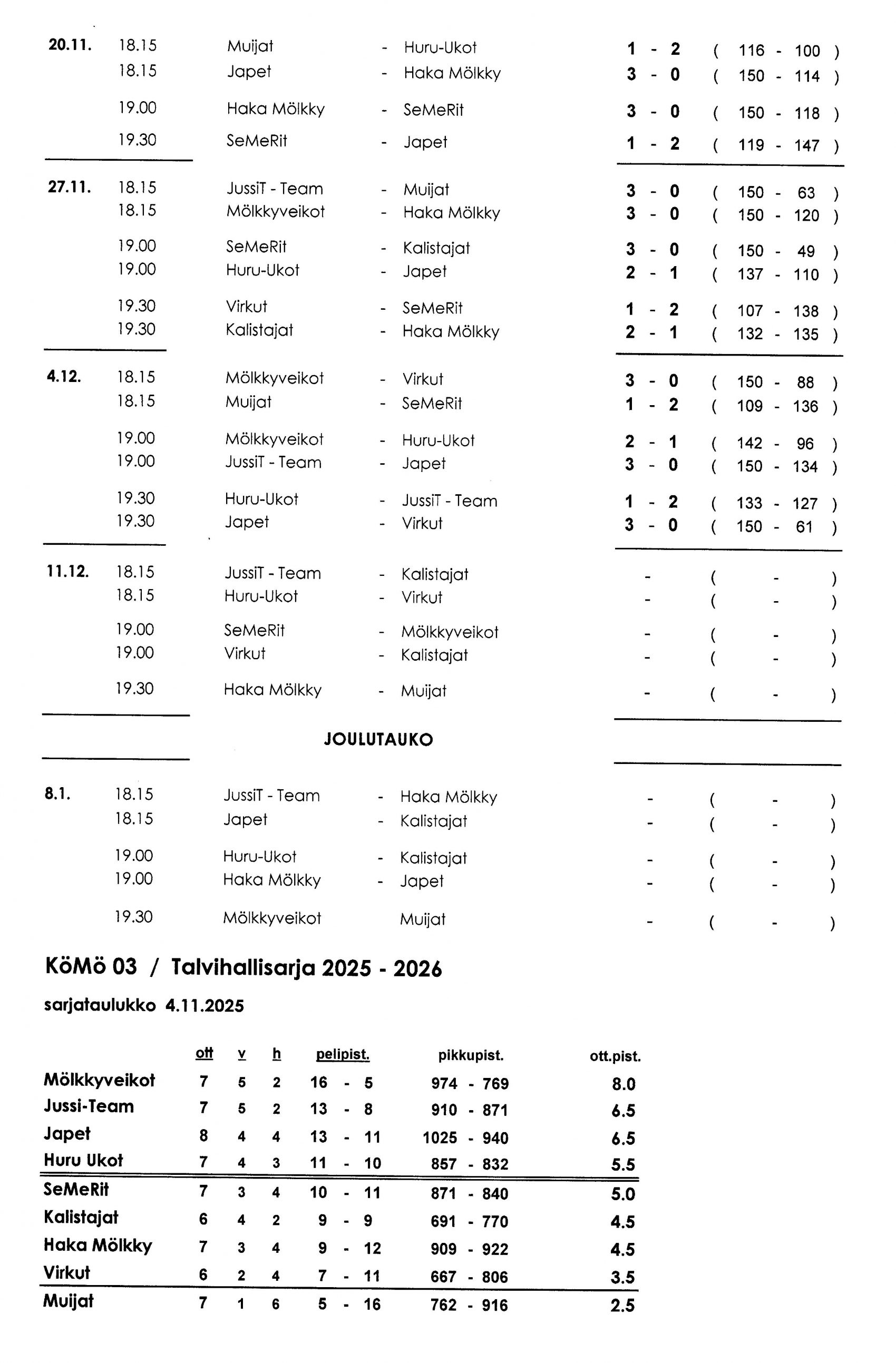 Köyliössä 2003 perustetun mölkkyseuran kotisivut